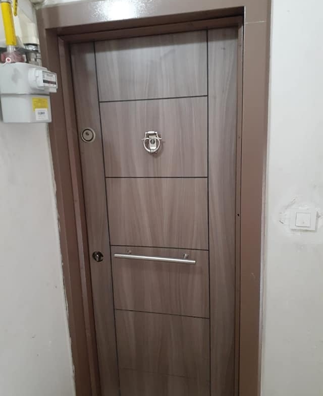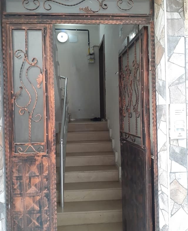 تم تركيب درابزين الدرج ويمكن الوصول إلى الشقة عبر 7 درجات.